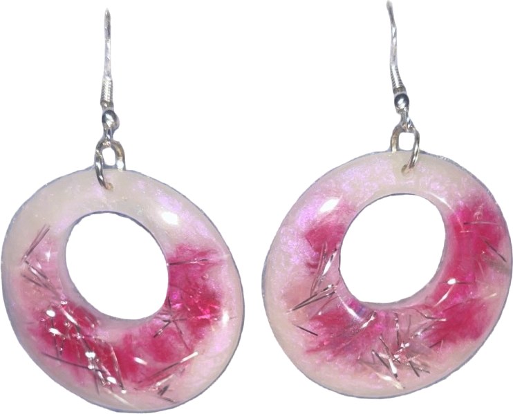 - Design: The "Blush Spark Hoops" earrings radiate elegance and charm with their clear resin base, infused with soft pink hues, shimmering white frost, and metallic silver threads. The design captures a delicate, festive aesthetic that is both versatile and eye-catching.