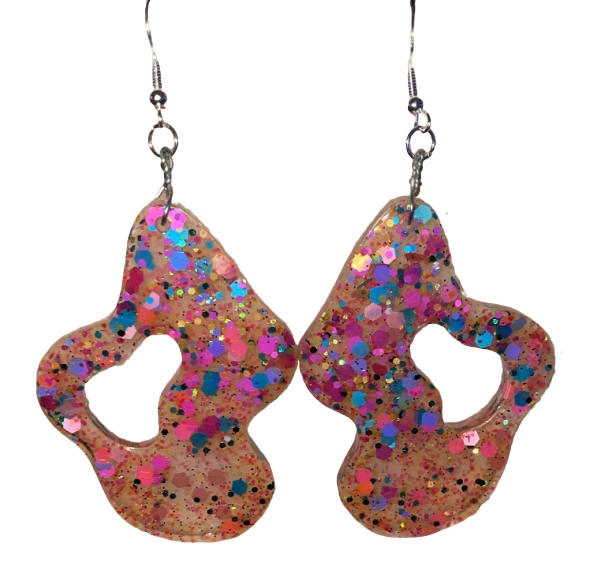 - Material: Crafted from high-quality resin, these earrings are lightweight yet durable. The embedded confetti glitter adds a fun, shimmering effect with a mix of pink, blue, purple, and gold hues.