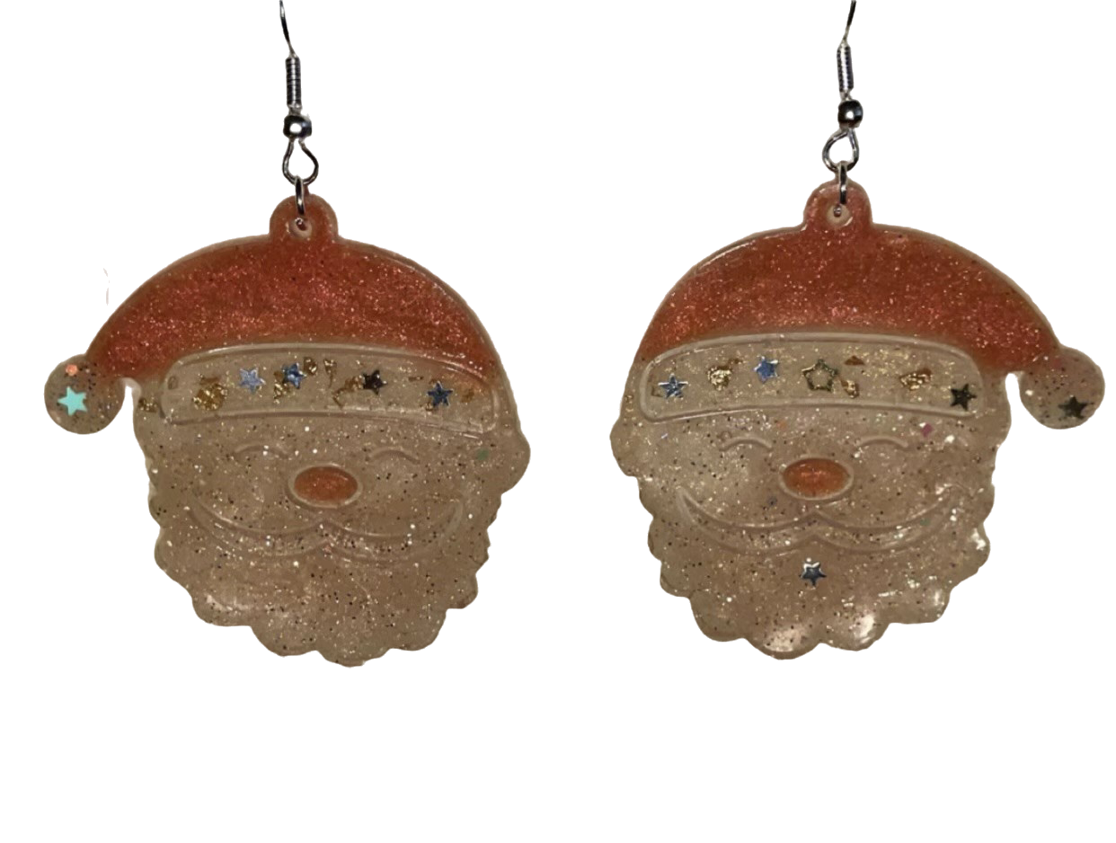 - Design: Festive Santa Claus-shaped earrings featuring a glittery red hat, a shimmering gold beard, and star accents, bringing holiday cheer with a playful and sparkling design.