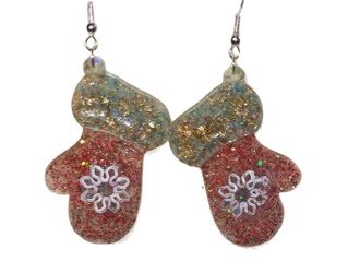 • Design: Adorable mitten-shaped earrings featuring sparkling red and gold glitter accents, adorned with intricate white snowflake details, capturing the cozy charm of the winter season.