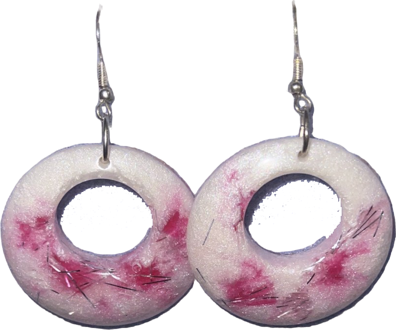- Design: Embrace the elegance of winter with the "Winter Rose Hoops" earrings. These unique circular earrings feature a frosty white base accented with delicate splashes of rosy pink and shimmering silver flecks, creating a stunning contrast reminiscent of snow-dusted rose petals.