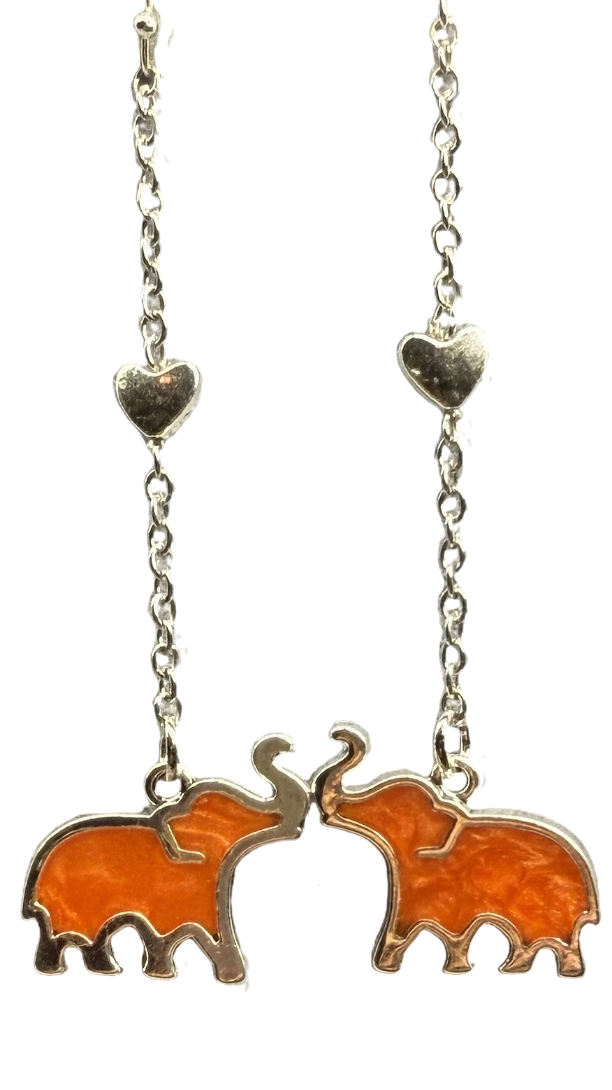 - Design: The Heart & Trunk Harmony earrings celebrate unity and love with elegant orange enamel elephants connected by delicate silver-plated chains adorned with polished heart-shaped accents.